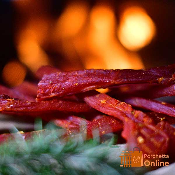 L’oste spesso per invogliare a bere i propri avventori, li stuzzicava con questa carne essiccata – che in origine era di cavallo o perlopiù di asino – che opportunamente pepata condita e speziata con indiavolati peperoncini, provocava arsura nelle gole dei frequentatori dell’osteria, arsura che puntualmente veniva spenta con le caraffe e “fogliette” di vino che scorrevano a fiumi, sui tavolacci delle osterie di inizio secolo..